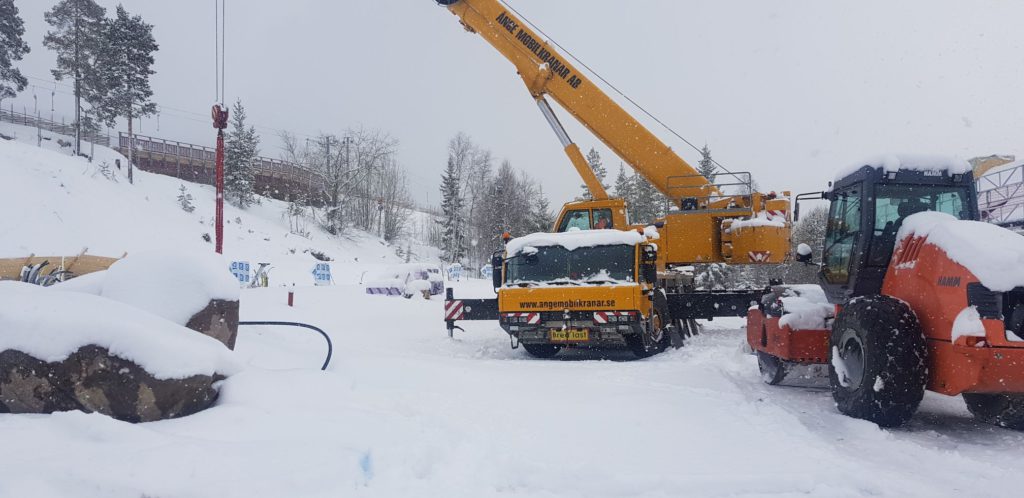 – Lämna aldrig bommar uppe. Oljan blir kall och trögflytande. Kontrollera isbildningar i linhjul och överväg om du ska göra tunga lyft i förhållande till vad kranen klarar av när det är riktigt kallt. Maskinens egenskaper påverkas.